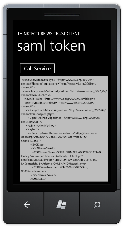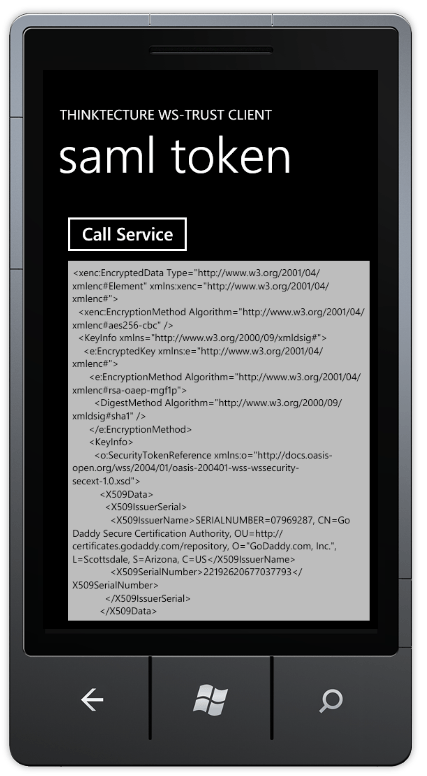 First I converted the Silverlight library that comes with the Identity Training Kit to WP7. Some things are not supported in WP7 WCF (like message inspectors and some client runtime hooks) – but besides that this was a simple copy+paste job. Very nice!