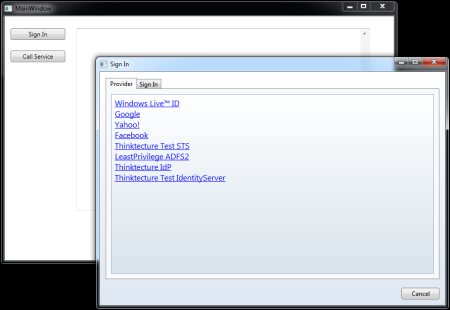 Here you can find my updated ACS2 sample. In addition to the existing front ends (web [WS-Federation], console [SOAP & REST], Silverlight [REST]) and error handling, it now also includes a WPF client that shows the passive/active transition with a SOAP service as illustrated here.