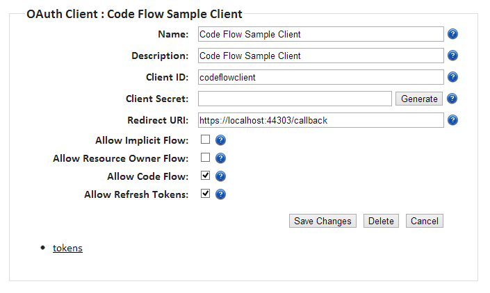 Remember you should always select only one flow type per client – rather create multiple clients for each flow you want to support (see my next post on OAuth2 vulnerabilities for more details).