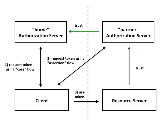 So in other words, what the core spec doesn’t explicitly cover is, requesting tokens for a different trust domain – or put differently: federation.